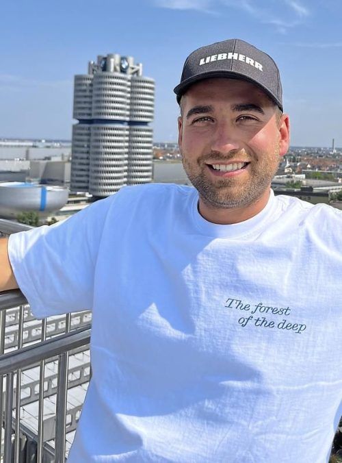 Reporter Julian Limmer in luftiger Höhe.