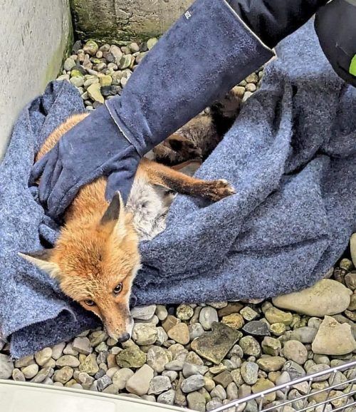 Ein verletzter Fuchs ist gestern in der Noestraße von der Feuerwehr gerettet worden. Er war wohl vier Meter abgestürzt und in einem Lichtschacht gefangen. Bei seiner Suche nach einem Ausweg biss er in ein Stromkabel und wurde leicht verletzt. Die Feuerwehrler konnten das Tier beruhigen und einfangen