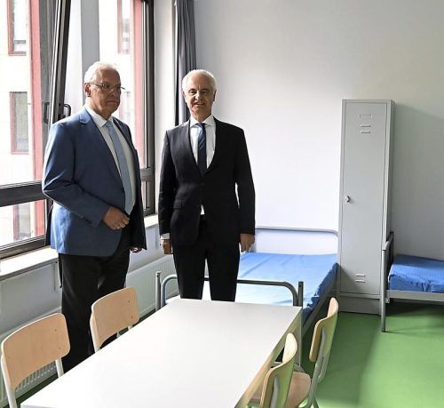 Joachim Herrmann (CSU) betritt den Raum. Langsam schreitet der bayerische Innenminister über den kargen, grünen Kunststoffboden. Er schaut sich um. Fünf Betten stehen da, schmal und mit einfachem Metallgestell