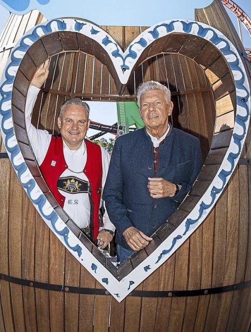 Weiß-blau umrahmt ein Herz zwei der mächtigsten Männer Münchens. Der Himmel über ihnen am Donners