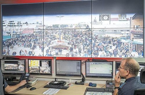 Mit 54 Kameras überwacht die Polizei das Festgelände. Mehrere Beamte haben stets ein Auge darauf. © Schmidt (2)