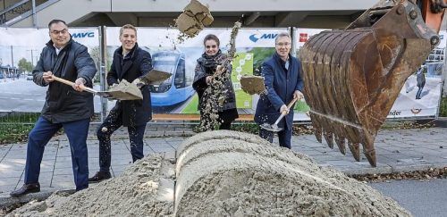 Spatenstich mit (v.l.) MVG-Chef Ingo Wortmann, 2. Bürgermeister Dominik Krause, Baureferentin Jeanne-Marie Ehbauer und Georg Dunkel.