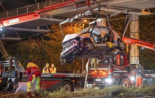 Nur noch ein Wrack: der zerstörte Toyota nach dem Unfall. Er wurde per Kran weggeschafft. © Fotos: News 5