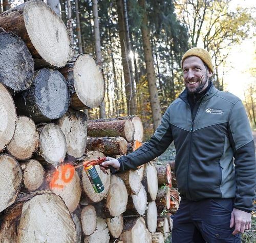 Stefan Ziermann markiert die Baumstämme. Sie werden samt Borkenkäfern abtransportiert. © Michaela Stache