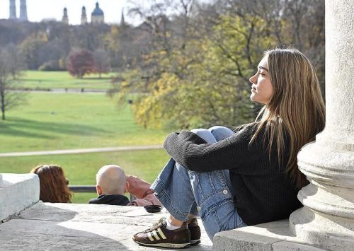 Chillen im Englischen Garten: Paula genießt die Sonne am Monopteros. © Schlaf