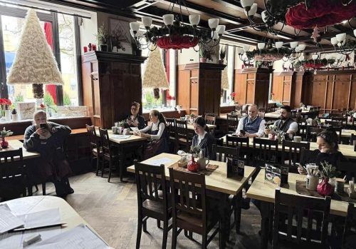 Licht aus, Handy an: Die Bedienungen sitzen im leeren Klosterwirt am Dom. © privat, Stache, Götzfried