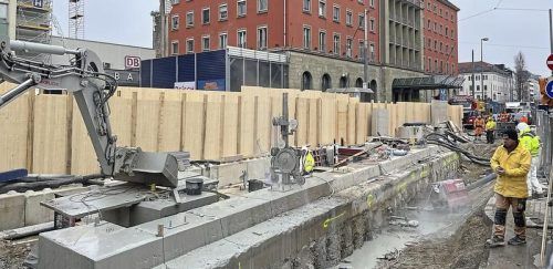 Das Sägeblatt frisst sich kreischend durch den meterdicken Beton, zerstückelt einen Riesen-Brocken in metergroße Einzelteile. An der Bayerstraße zersägen Arbeiter gerade ein dickes Stück Hauptbahnhof