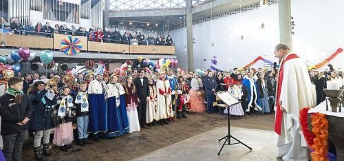 Volles Haus in der Kirche St. Nazareth: Pfarrer Rainer Maria Schießler hielt seine Schunkelmesse vor mehr als 400 Faschingsbegeisterten. © Michaela