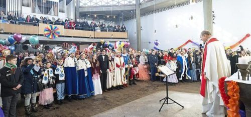 Volles Haus in der Kirche St. Nazareth: Pfarrer Rainer Maria Schießler hielt seine Schunkelmesse vor mehr als 400 Faschingsbegeisterten. © Michaela