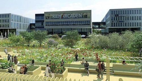 Ein grüner Park soll vor den Riem Arcaden entstehen. Derzeit präse