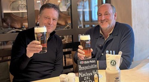 Prost! Constantin Wahl (li.) und Sebastian Kuffler senken den Bierpreis im Haxnbauer auf 4,80 Euro für die Halbe. © Marcus Schlaf (3), Sigi Müller/Brauerbund