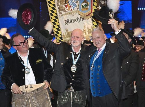 Christian Schottenhamel (re.) machte Markus Meindl zum Ehrenfilser. Links im Bild: CSU-OB-Kandidat Clemens Baumgärtner mit neuer Lederhose. © Frank Rollitz/ABR-Pictures (3)