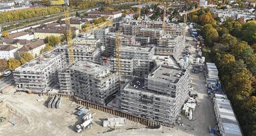 Das „Orplid“ wächst: Im April sollen die ersten 286 Wohnungen bezugsfertig sein. © Marcus Schlaf