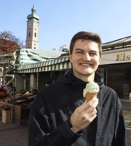Pistazie und Matcha sind im Trend: Reporter Lukas Murr hat grünes Eis am Viktualienmarkt probiert. © Götzfried/Murr (2)