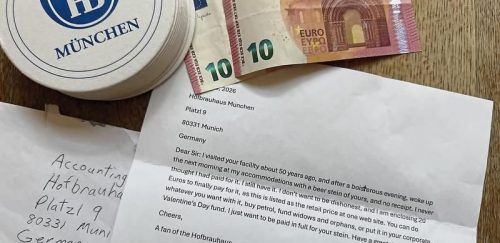 „Möchte nicht unehrlich sein“: Reuiger „Dieb“ schickt Brief und Bares ans Hofbräuhaus
