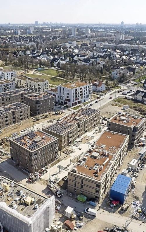 Nicht weit vom S- und U-Bahnhof Feldmoching entfernt an der Hochmuttinger Straße hat die Münchner Wohnen jetzt insgesamt 262 Wohnungen fertiggestellt. 101 Wohnungen waren bereits 2024 bezugsfertig, jetzt kamen in einem zweiten Bauabschnitt noch einmal