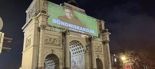 Das Kreuz mit der Wahlwerbung: Die Grünen und ein von der Bundespartei beauftragtes Werbeunternehmen müssen insgesamt 6948 Euro Strafe zahlen, weil sie am 3. Januar 2025 das Siegestor eine Stunde lang mit dem Gesicht d