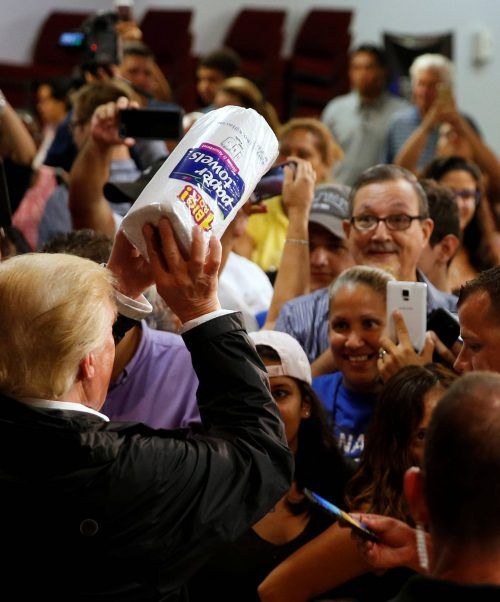San Juan – In sandfarbenen Khaki-Hosen und einem schwarzen Windbreaker stapft Donald Trump durch die verwüsteten Straßen von San Juan. Er schüttelt Hände, posiert für Fotos und lobt den Einsatz der Rettungskräfte nach Hurrikan „Maria“. Fast zwei Wochen hat sich der US-Präsident Zeit gelassen, um die