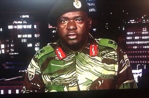 Harare – Der runde Mann im Tarnanzug spricht langsam, als wollte er seine Zuhörer beruhigen. Seine Exzellenz, der Präsident und Genosse Robert Mugabe, sei in Sicherheit, sagt er mit starrer Mine in die Kamera. Das Militär habe kurzzeitig die Macht übernommen, um „Kriminelle“ im U