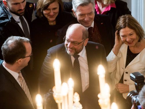 Irsee – Martin Schulz geht immer recht schnell, beim Besuch im Kloster Irsee beeilt er sich aber besonders. Er kommt wegen der winterlichen Straßenverhältnisse schon zu spät an, im Eilschritt marschiert er durchs Kloster. Hände schüttelt er kaum, selbst mit Landeschefin Natascha