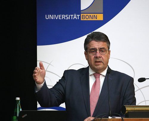 Bonn – Sigmar Gabriel hat erst ein paar Minuten gesprochen, da entrollen Studenten auf der Empore des Hörsaals zwei Plakate. „Gegen Iran-Siggi“ und „Für Israel“ steht darauf. Sie werfen Flugblätter in den Saal und rufen: „Herr Gabriel, warum liefern Sie Waffen an die Türkei? Warum arbeiten Sie mit P