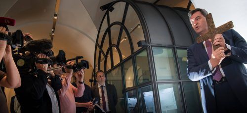 München – Markus Söder steht vor einer weißen Wand und greift zum Kreuz. Der Nagel ist schon eingeschlagen, alles ist angerichtet für einen Handgriff mit Symbolwirkung. Der CSU-Ministerpräsident lächelt noch kurz in die Kameras, zack, schon hängt das Kruzifix im Foyer der Münchner Staatskanzlei. Ihm