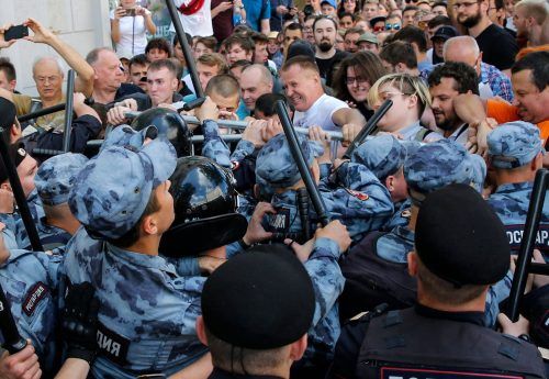 Moskau – Auf Moskaus Prachtstraße, die direkt zum Kreml führt, stehen sich zwei Gruppen wie an einer Front gegenüber. Tausende Demonstranten mit Bannern auf der einen Seite, Polizisten mit Schlagstöcken auf der anderen. Der Zorn der Protestierenden richtet sich gegen die Stadtbeh