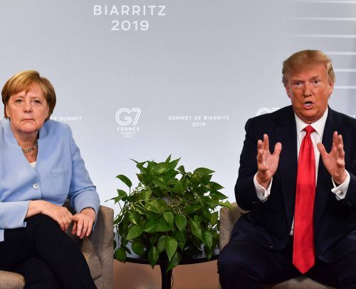 Biarritz – Donald Trump und Angela Merkel sind sichtlich um einen entspannten Eindruck bemüht – der US-Präsident mehr noch als die Kanzlerin. „Sie ist eine brillante Frau“, schmeichelt Trump, als er Merkel an diesem Montag mit mehr als zwei Stunden Verspätu