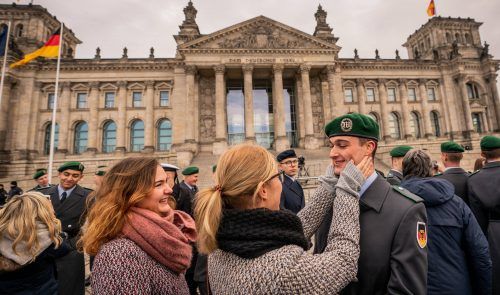 Bei einem feierlichen Gelöbnis von 400 Bundeswehrrekruten vor dem Reichstagsgebäude hat Verteidigungsministerin Annegret Kramp-Karrenbauer die Notwendigkeit einer wehrhaften Demokratie bekräftigt. „Die Bundeswehr verteidigt Deutschland gegen äußere Bedrohungen“, sagte die CDU-Politikerin. Sie sei ei