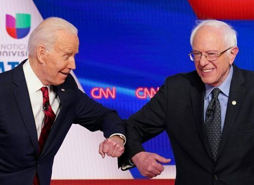 Washington – Es war eine TV-Debatte zweier Präsidentschafts-Kandidaten, wie sie die USA in ihrer Geschichte noch nie gesehen hatten. Joe Biden und Bernie Sanders begrüßten sich nicht mit Handschlag, sondern durch Ellbogen-Kontakt. Die Stehpulte der beiden wurden zwei Meter voneinander entfernt platz