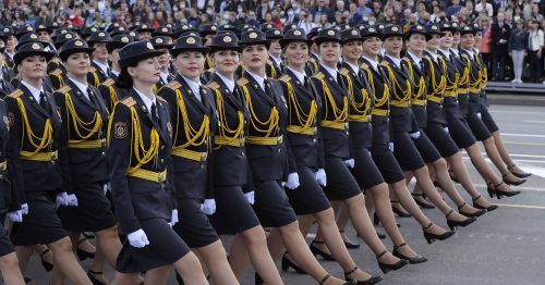 Während Moskau wegen der Corona-Krise auf die größte Militärparade der russischen Geschichte verzichtete, fuhr die Republik Belarus (Weißrussland) in Minsk schweres Kriegsgerät auf. Bei den Feiern zum 75. Jahrestag des Weltkriegsendes in Europa nahmen auch diese Soldatinnen teil – ohne Gesichtsbedec