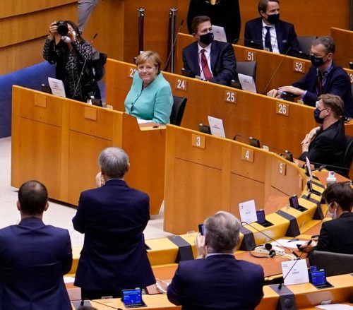 München/Brüssel – Noch schnell ein Schluck Wasser. „Grazie“ flüstert Angela Merkel dem Saaldiener zu. Dann beginnt sie ihre Rede an das Europaparlament. „Die Aufgaben vor uns sind gewaltig und verlangen gewaltige Anstrengungen“, ruft die Kanzlerin den Abgeordneten aus 27 Länder