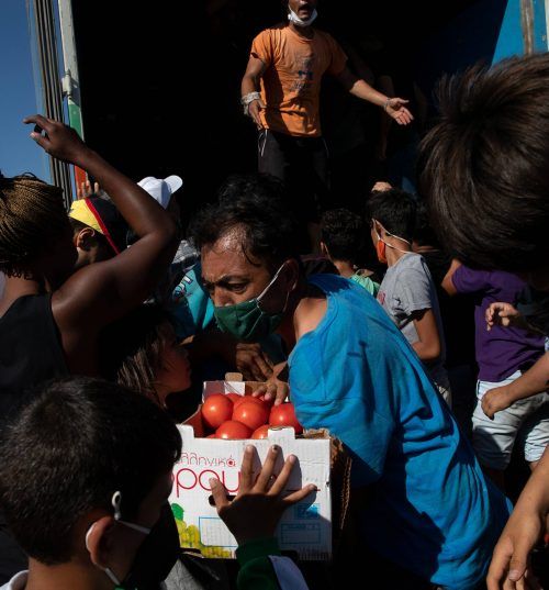 Lesbos/Athen – Familien mit Kindern, Junge, Alte, Kranke haben ihre Decken am Straßenrand auf dem nackten Asphalt ausgebreitet. Als Kopfkissen dienen Plastiktüten mit dem wenigen, was die Menschen aus Moria retten konnten – oder auch einfach nur die Bordsteinkante. Direkt neben ihren Köpfen stehen W