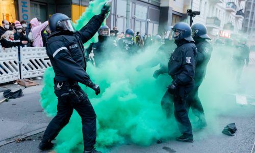 Linke Demonstranten griffen zu Gewalt: Feuerwerkskörper, Nebeltöpfe, Flaschen- und Steinwürfe gegen Beamte