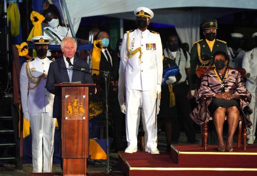 Richterin Sandra Mason im Beisein von Prinz Charles als erste Präsidentin der Karibikinsel vereidigt