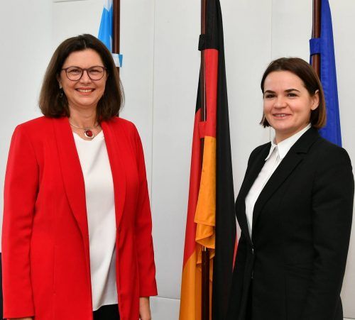 München – Um Solidarität zu zeigen, genügt manchmal die richtige Kleidung. Ilse Aigner trägt weißes Shirt unter rotem Blazer, was kaum auffiele, wenn nicht diese Frau neben ihr stünde: Swetlana Tichanowskaja, 39 Jahre alt und weltbekannt, seit sie bei der Wahl 2020 gegen den belarussischen Diktator