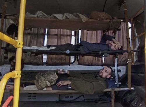 München/Mariupol – Mit teils erhobenen Armen stehen Männer in Militärkleidung vor ihren Gegnern. Andere liegen verletzt auf Tragen, haben Verbände an Armen und Beinen, werden in spezielle Busse zum Abtransport gebracht. Im Hintergrund ist ein Industriegelände zu sehen. Viele der Männer haben lange B