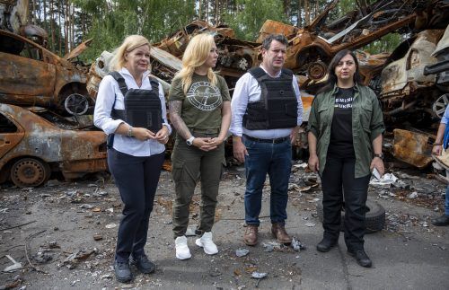 Kiew/Irpin – Es klingt paradox: Ein Ende des russischen Angriffskrieges in der Ukraine ist nicht absehbar, dennoch ist das Thema Wiederaufbau an diesem Tag im Raum Kiew allgegenwärtig. Als Innenministerin Nancy Faeser und Sozialminister Hubertus Heil (beide SPD) am Mittag den zerstörten Flughafen Ho