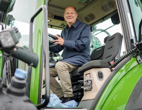 Der Mann sitzt offenbar gerne an Lenkrädern: Vergangene Woche durfte Olaf Scholz in Schweden schon Lastwagen fahren – am Wochenende posierte er nun mit ähnlicher Begeisterung auf einem Traktor. „Das ist schön hoch – da behält man den Überblick.“ Im brandenburgischen Trebbin besuchte der Kanzler eine