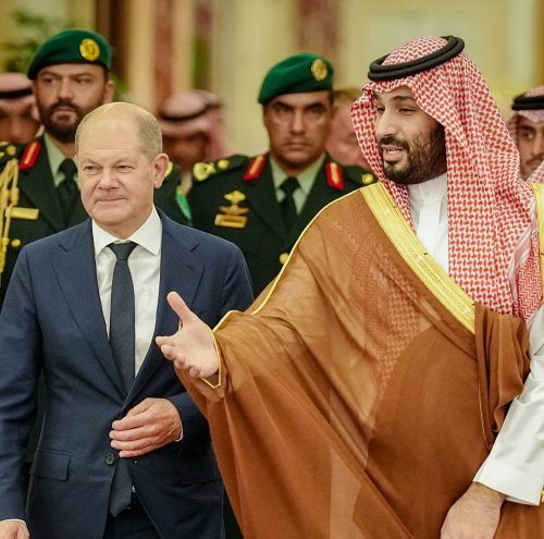 Dschidda – Es ist eine ausgesprochen freundliche Begrüßung nach einer tiefen diplomatischen Krise: Mit einem kräftigen Handschlag hat der saudische Kronprinz Mohammed bin Salman am Samstag Bundeskanzler Olaf Scholz im königlichen Palast des Friedens (Al-Salam-Palast) in der Hafenstadt Dschidda empfa