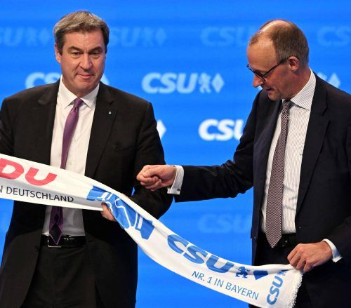 Augsburg – Vielleicht verdutzt ihn dieses Geschenk, das er da in die Hand gedrückt bekommt. Es rutscht Friedrich Merz jedenfalls aus der Hand. „Net gleich wieder fallen lassen“, brummt Markus Söder von der Seite, und dann halten sie das Ding doch noch gemeinsam in die Ka