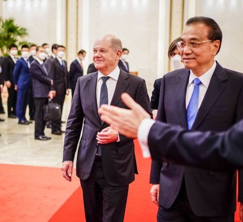 Peking – Es ist ein sehr spezieller Empfang, der Bundeskanzler Olaf Scholz am Flughafen von Peking bereitet wird. Menschen in weißen Schutzanzügen rollen den roten Teppich vor seiner Regierungsmaschine aus. Bis er ihn betreten kann, dauert es ein paar Minute