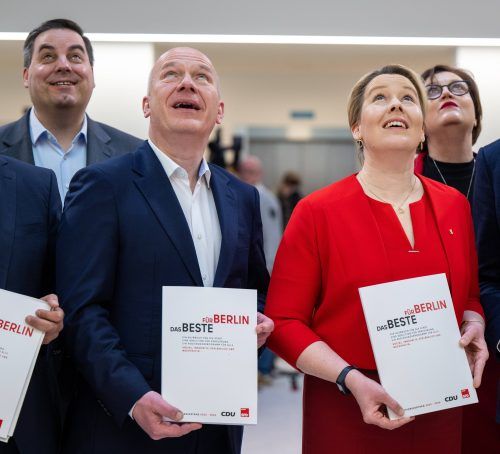 München – Für Franziska Giffey muss sich dieser Auftritt seltsam anfühlen. Noch ist sie ja im Amt, noch steht da die Regierende Bürgermeisterin am Mikrofon, aber trotzdem spielt sie am Montagmorgen nur mehr die erste Nebenrolle. Der Hauptdarsteller heißt Kai Wegner, Giffeys Nachf