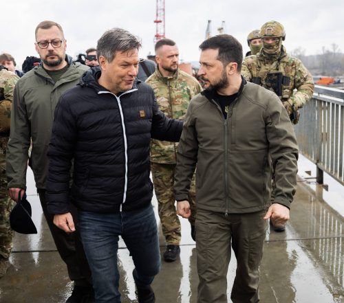 Kiew/Jahidne – Jahidne ist ein feuchtkaltes Nest an diesem Montag Anfang April. Hähne krähen. Hinter Absperrband steht eine Gruppe Dorfbewohner und beobachtet, was passiert, wenn Wolodymyr Selenskyj auftaucht: Eine Kolonne schwerer schwarzer Geländewagen braust