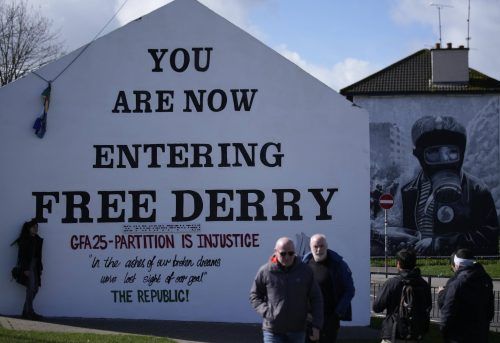 Belfast/Ballina – „Stars and Stripes“ – die blau-weiß-rote Flagge der Vereinigten Staaten ist schon Tage vor dem Besuch von US-Präsident Joe Biden in dem Städtchen Ballina allgegenwärtig. Sie hängt als Wimpel an Girlanden über der Hauptstraße, weht vor Pubs und Geschäften. Selbst die Schaufensterpup
