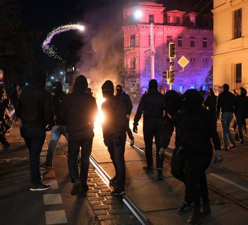 Leipzig – Im Amtsdeutsch ist die Lage nüchtern beschrieben. In der Stadt gebe es „an verschiedenen Stellen Zusammenrottungen von augenscheinlich gewaltbereiten“ Menschen, teilte die sächsische Polizei nachts mit. Das Bild auf den Straßen ist gröber: brennende Barrikaden, Steinwürfe, um Polizisten zu