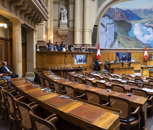 Bern/Moskau – Aus vier Bildschirmen spricht Wolodymyr Selenskyj am Donnerstag zu den Abgeordneten in Bern. Der Vorschlag, den der ukrainische Präsident per Video-Ansprache vor den beiden Kammern des Schweizer Parlaments unterbreitet: ein „globaler Friedensgip