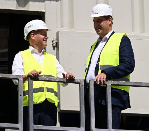 Geretsried – Als Scholz und Söder gemeinsam in den Bohrturm steigen, steht die Sonne schon nicht mehr ganz im Zenit – und brennt doch unerbittlich. Es ist ein heißer Donnerstagnachmittag in einem Waldstück in der Nähe von Geretsried im Süden von München. Die kanadische Firma Ea