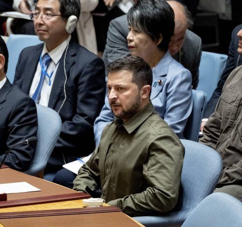 New York – Es ist ein Moment kurz nach Beginn, der von dieser Sitzung des UN-Sicherheitsrats bleiben wird. Der ukrainische Präsident Wolodymyr Selenskyj hat gerade Platz genommen, es redet der albanische Ministerpräsident Edi Rama. Als Vorsitzender des Rates soll er das Tref
