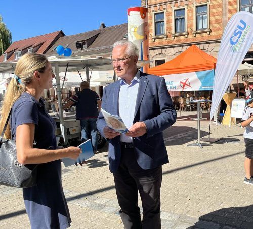 Erlangen – Ob der Herr Minister nicht lieber in den Schatten gehen wolle, fragen ein paar junge CSUler. „Ihnen muss doch in dem Sakko heiß sein“, sagt Patrick Helmer (26) von der JU Erlangen. Der Innenminister schüttelt den Kopf. „Ich bleibe lieber hier stehen. Da sieht man mich b